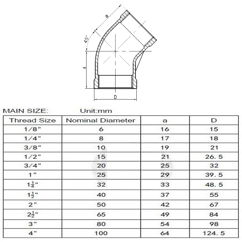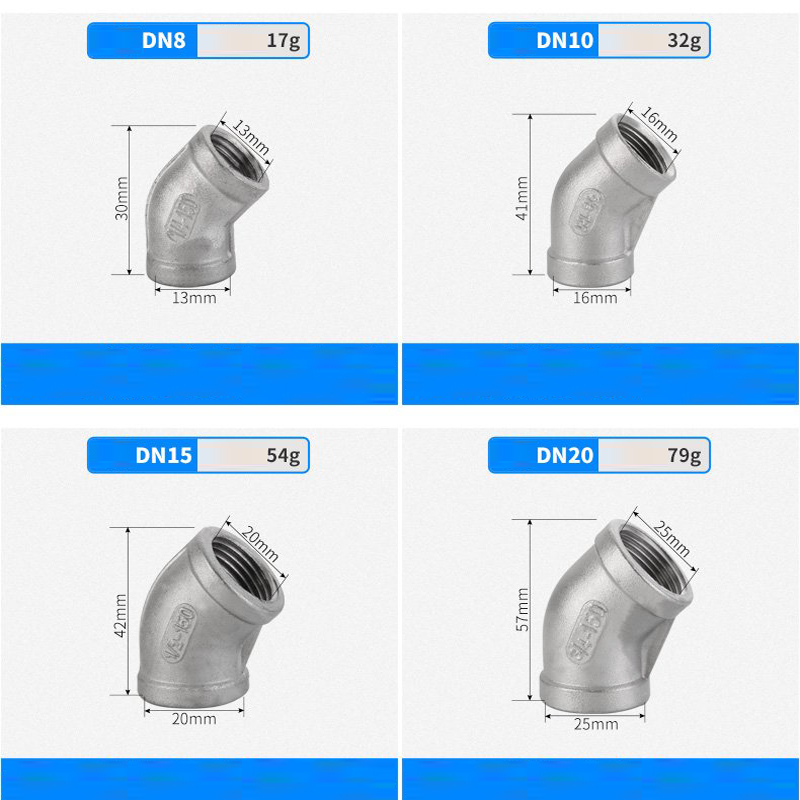 Co lơi ren, chếch ren inox, co ren inox 201/304/316 45 độ