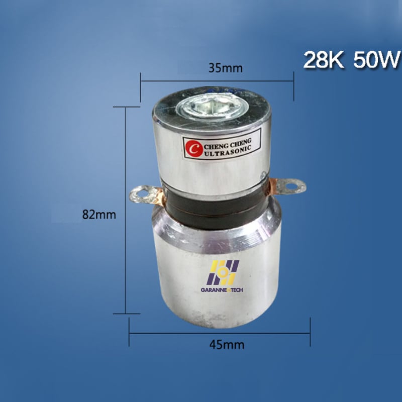 Đầu phát siêu âm tần số 28Khz, công suất 50W-100W là một linh kiện quan trọng, giúp chuyển đổi thành sóng siêu âm bằng cách cộng hưởng với với tần số đầu phát sóng siêu âm.