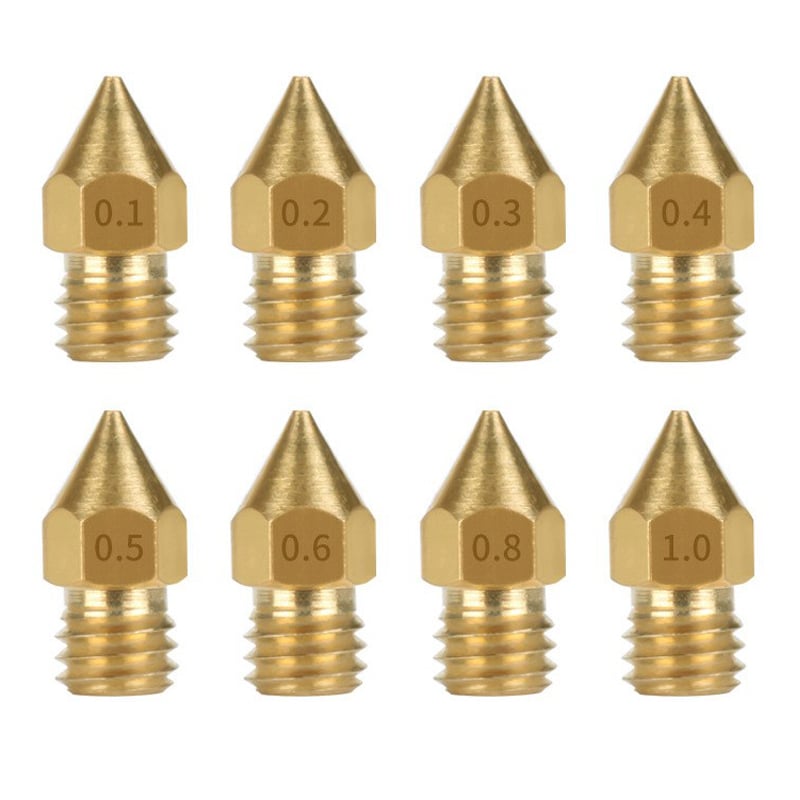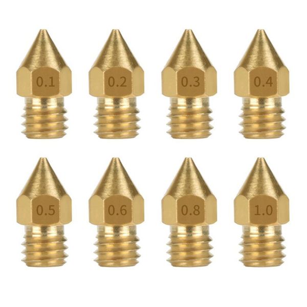 Đầu phun máy in 3D MK8 làm bằng chất liệu đồng cao cấp không gỉ, được gia công một cách chính xác, đồng thời đầu phun nhỏ giúp sản phẩm in được đẹp hơn. Kích thước đầu phun máy in 3D có nhiều size như: 0.2mm, 0.3mm, 0.4mm, 0.5mm, 0.6mm, 0.8mm, 1.0mm. Đây là loại đầu phun in đẹp và ổn định nhất trong các loại đầu phun MK8 của máy in 3D.