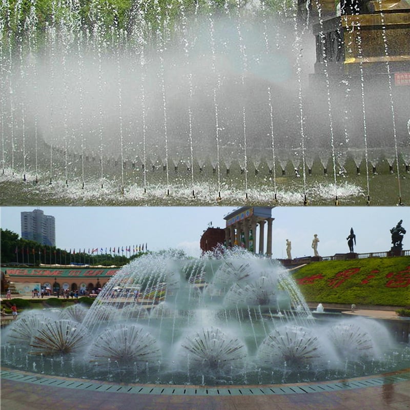 Đầu phun nước kết hợp nhiều vòi tia nước với nhau và thiết kế hợp lý, có thể tạo ra các hiệu ứng ấn tượng như kiểu phun hình vòm, hình tròn, hình sin, hình chuối kiểng, vương miện…