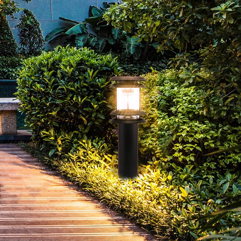 Đèn Chiếu Sáng Sân Vườn Hình Trụ Tròn Hợp Kim Nhôm Sơn Tĩnh Điện Màu Đen Có Đế Đi Liền được dùng để trang trí sân vườn biệt thự, villa, nhà hàng, khách sạn, resort.. làm tôn lên vẻ đẹp sang trọng, bề thế cho ngôi nhà của gia chủ.