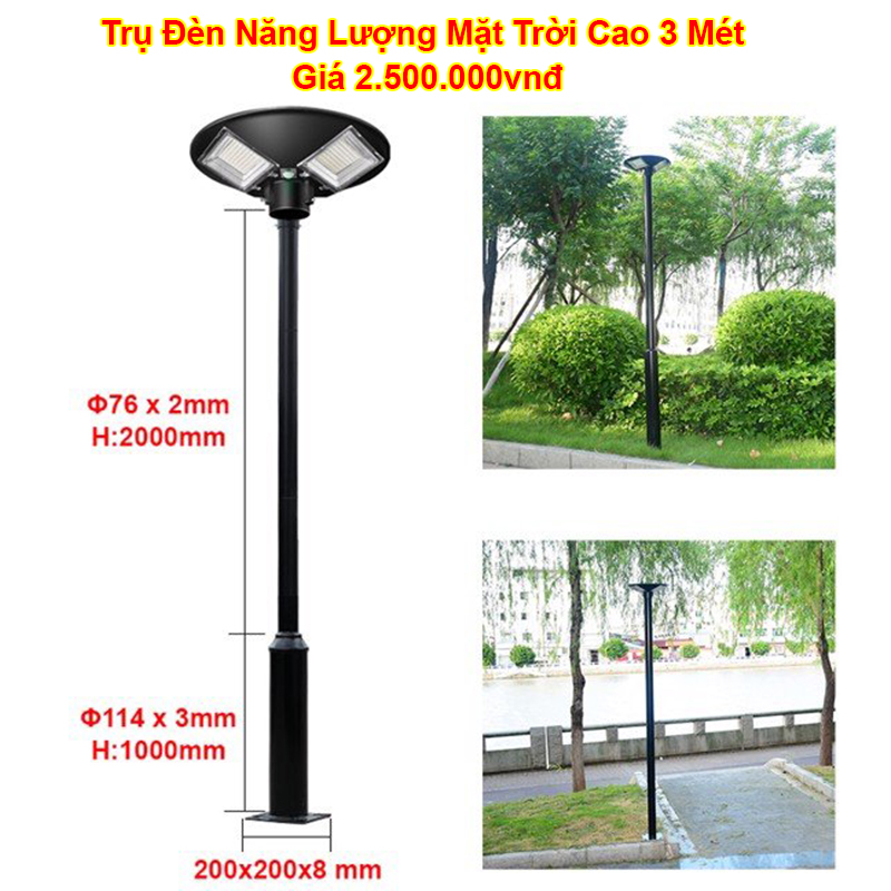 Trụ đèn sân vườn cao 3 mét. Được sử dụng chung với đèn năng lượng mặt trời UFO dùng để chiếu sáng công viên, chiếu sáng sân vườn, quán cà phê, hành lang, đô thị , với kiểu dáng thanh nhã, hài hòa, lắp đặt thuận lợi, dễ vận chuyển. Sau khi gia công được sơn màu theo yêu cầu.