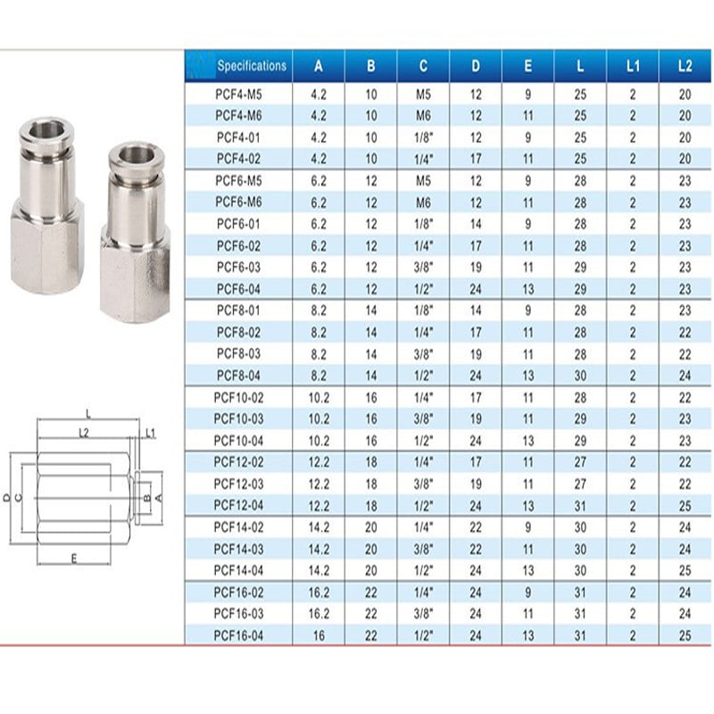 Khớp nối nhanh khí nén loại thẳng bằng inox 304,316 không gỉ PCF là thiết bị không thể thiếu trong hệ thống khí nén. Khớp nối có tác dụng kết nối từ máy nén khí ra dây hơi, từ dây hơi vào các thiết bị sử dụng khí nén, xi lanh, máy móc và các loại thiết bị dùng hơi khác…