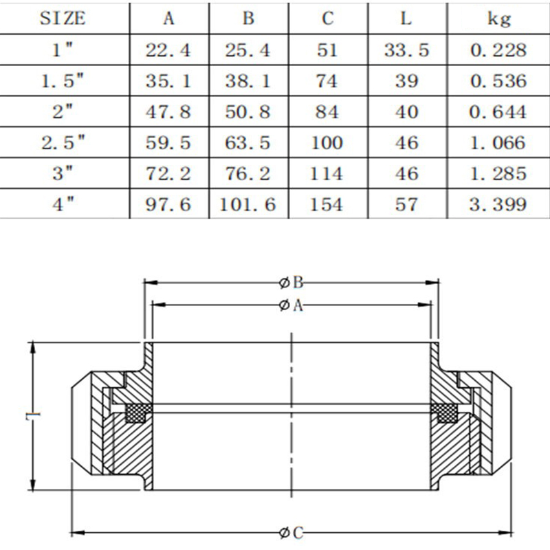 Bảng thông số kỹ thuật cấu tạo của khớp nối vi sinh rắc co inox