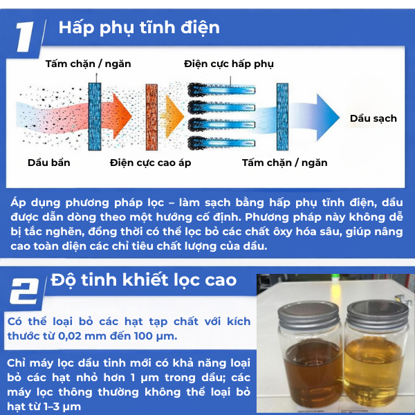 Hấp phụ tĩnh điện giúp lọc sạch dầu, nâng cao độ tinh khiết và chất lượng dầu