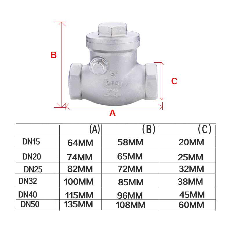 Kích thước van 1 chiều Inox