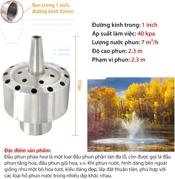 Vòi Phun Nước Nghệ Thuật Hình Pháo Hoa 2 Tầng Phi 34mm thường được sử dụng trong các công trình đài phun nước nghệ thuật, nước phun áp suất lớn mang cảm giác tươi mát, sinh động đến với cả không gian xung quanh.