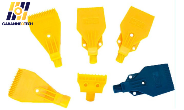 - Vòi thổi có thiết kế từ vật liệu ABS hoặc hợp kim nhôm. Với một số lỗ phun tròn, vòi thổi đẩy ra khí để tạo thành luồng khí hình quạt. Cấu trúc bên trong vòi thổi tuân theo nguyên lý khí động học, giúp giảm cản trở khí hiệu quả khi hoạt động, đồng thời giảm tiếng ồn và tiêu thụ khí, đảm bảo hiệu suất thổi khí cao.